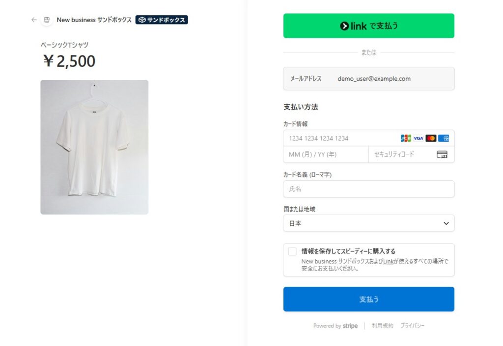• カード情報:4242 4242 4242 4242