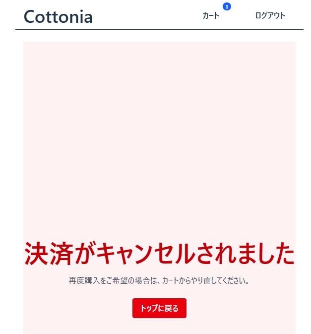 決済に成功すると成功ページに移り、失敗すると失敗ページに移ります。